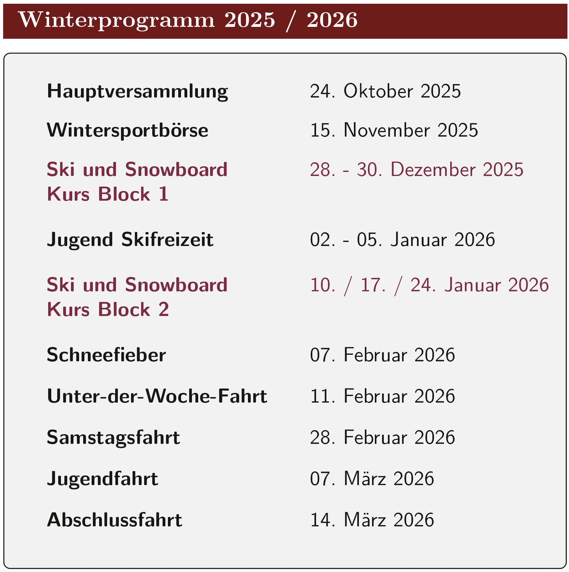 Vom 02. – 05. Januar 2026 findet unsere Jugend-Skifreizeit im BLSV Sportcamp in Inzell sowie im benachbarten Skigebiet Steinplatte – Winklmoosalm statt.